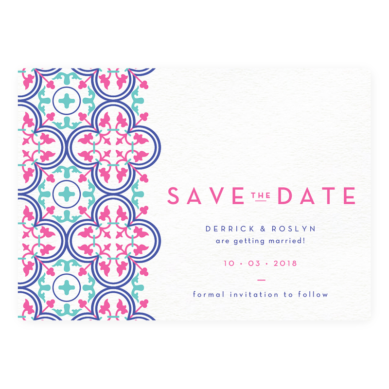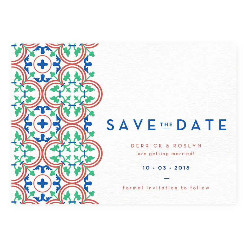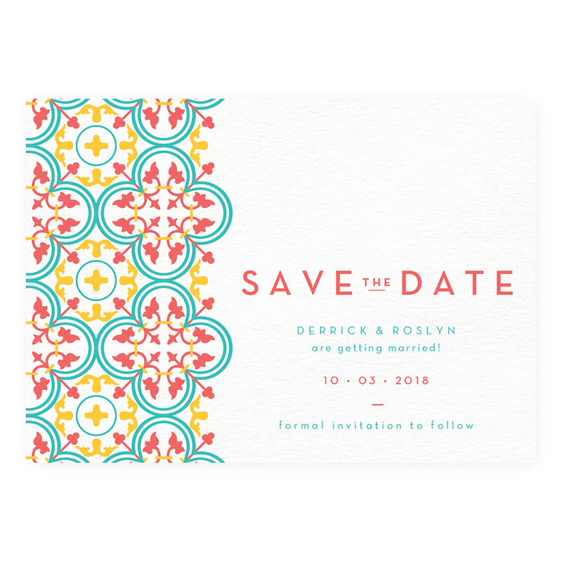 SPECIFICATIONS FOR SAVE THE DATE Size of card is 5" x 7" Print Method: Digital Print, Single Side Material: FSC certified 300gsm card stock.