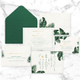 The Tropical Palm set features deep green monstera leaves and palm leaves in a modern minimalist style that is perfect for a summer wedding.