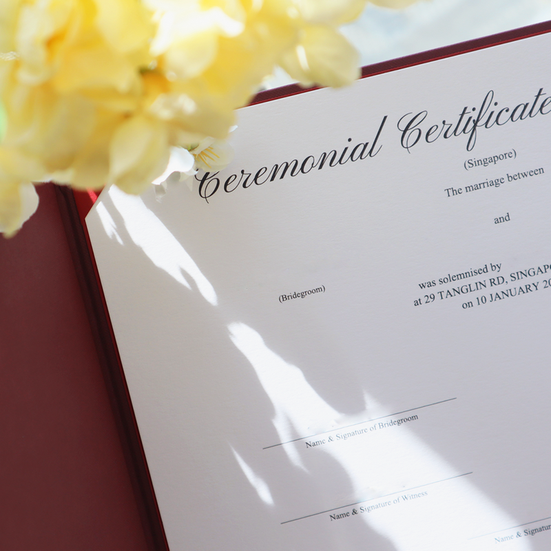 · Comes with 1 pocket for your A4 certificate and printing of R.O.M Certificate · Size: 304 x 220mm (fits A4 paper) · Available for add on: Photo Frame (5R) - Photo printing not included