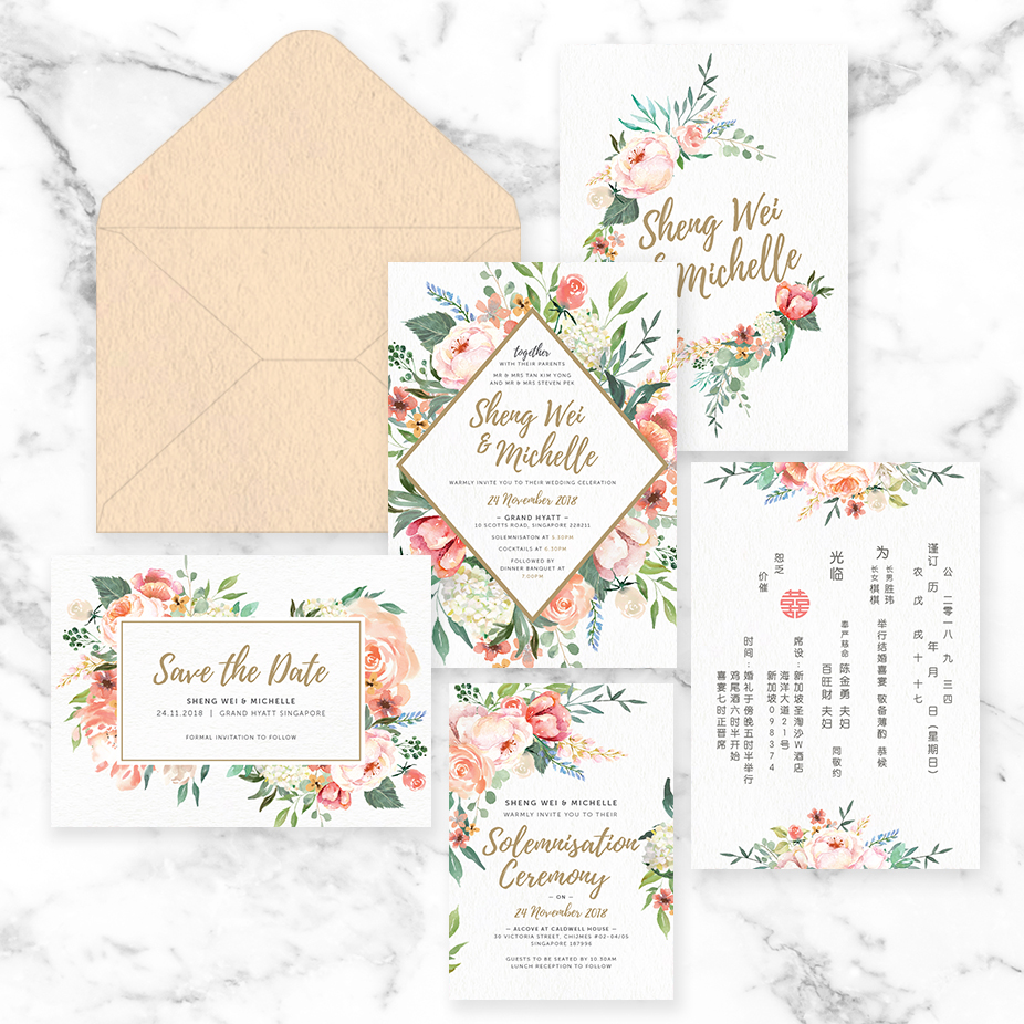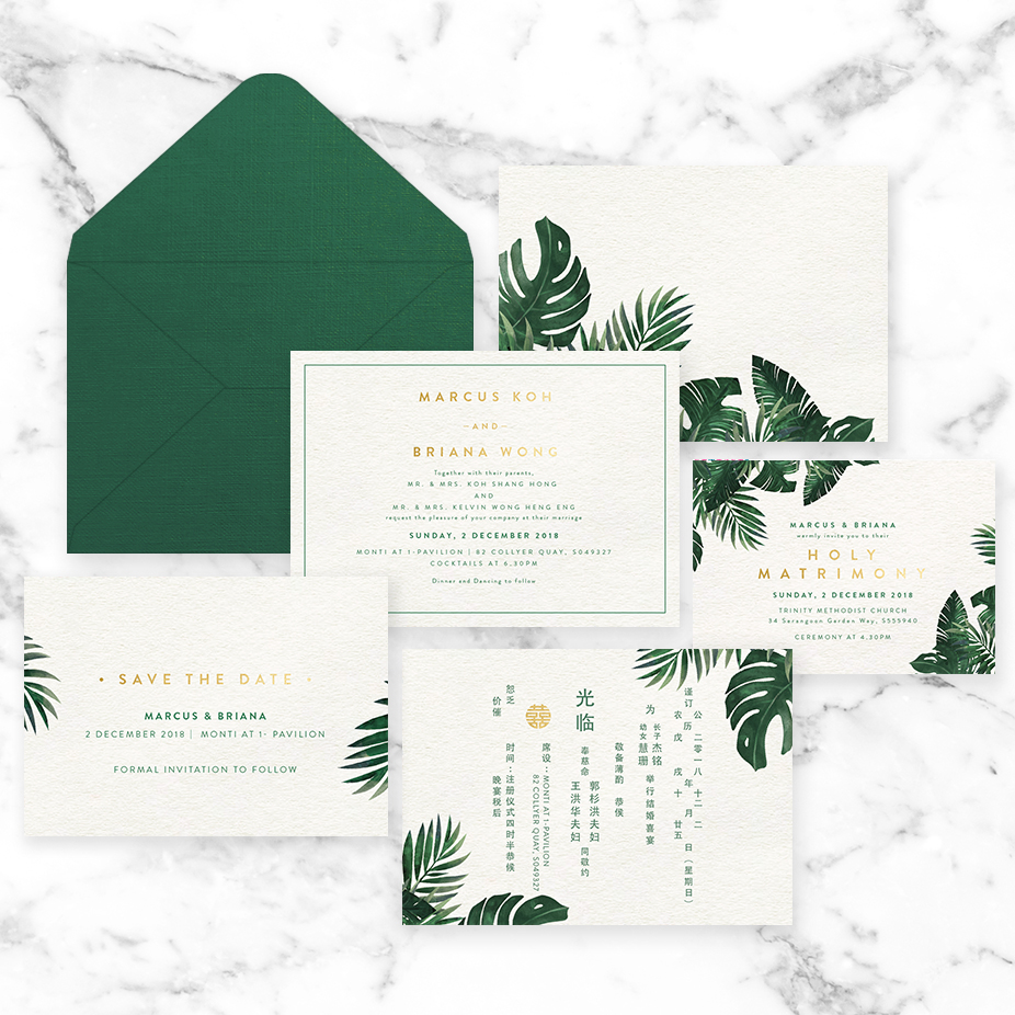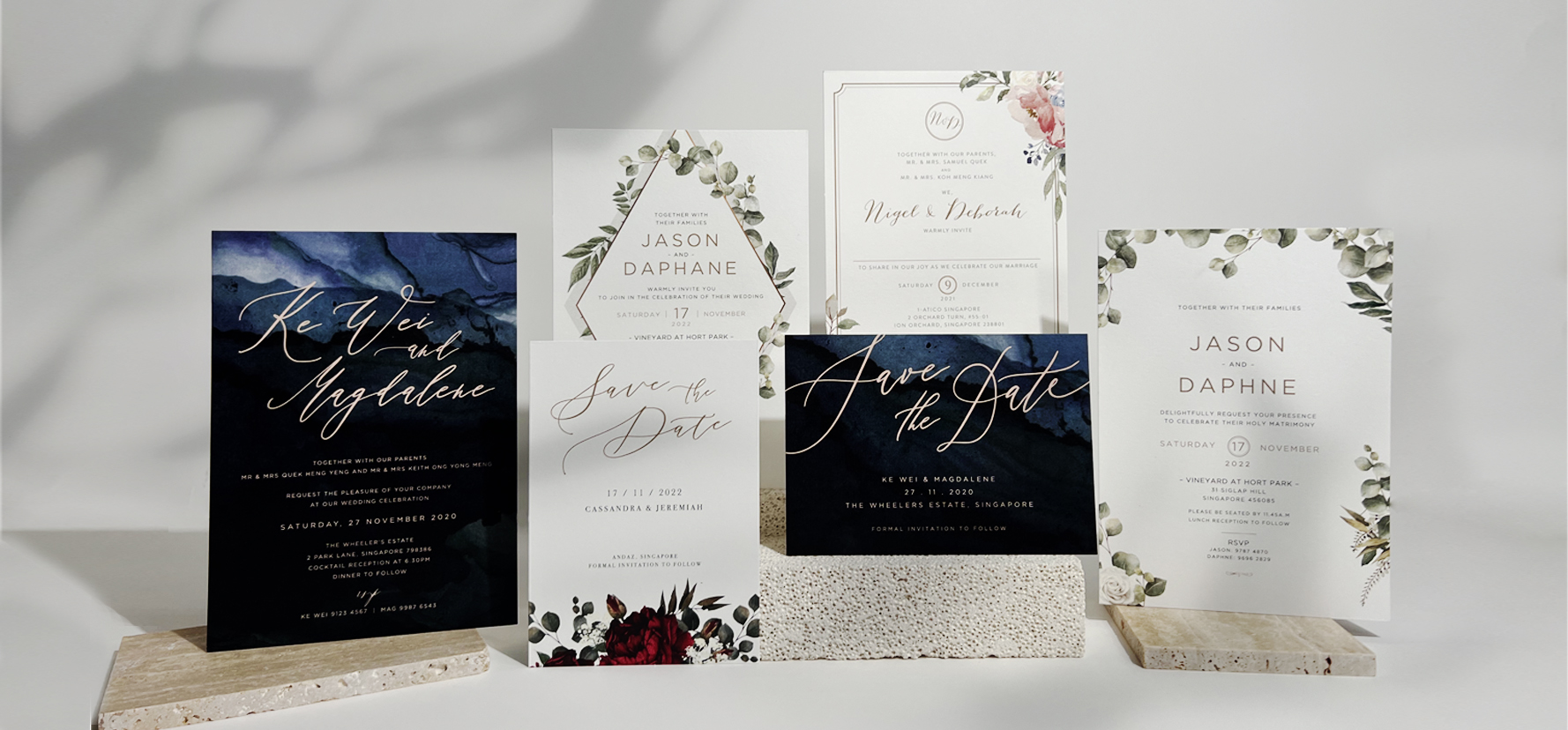 An exclusive collection of wedding invitations specially designed by our team of wedding specialists. Featuring styles to suit a range of wedding themes, make a good first impression on your guests by sending them a personalised invitation that reflects your style and journey as a couple.